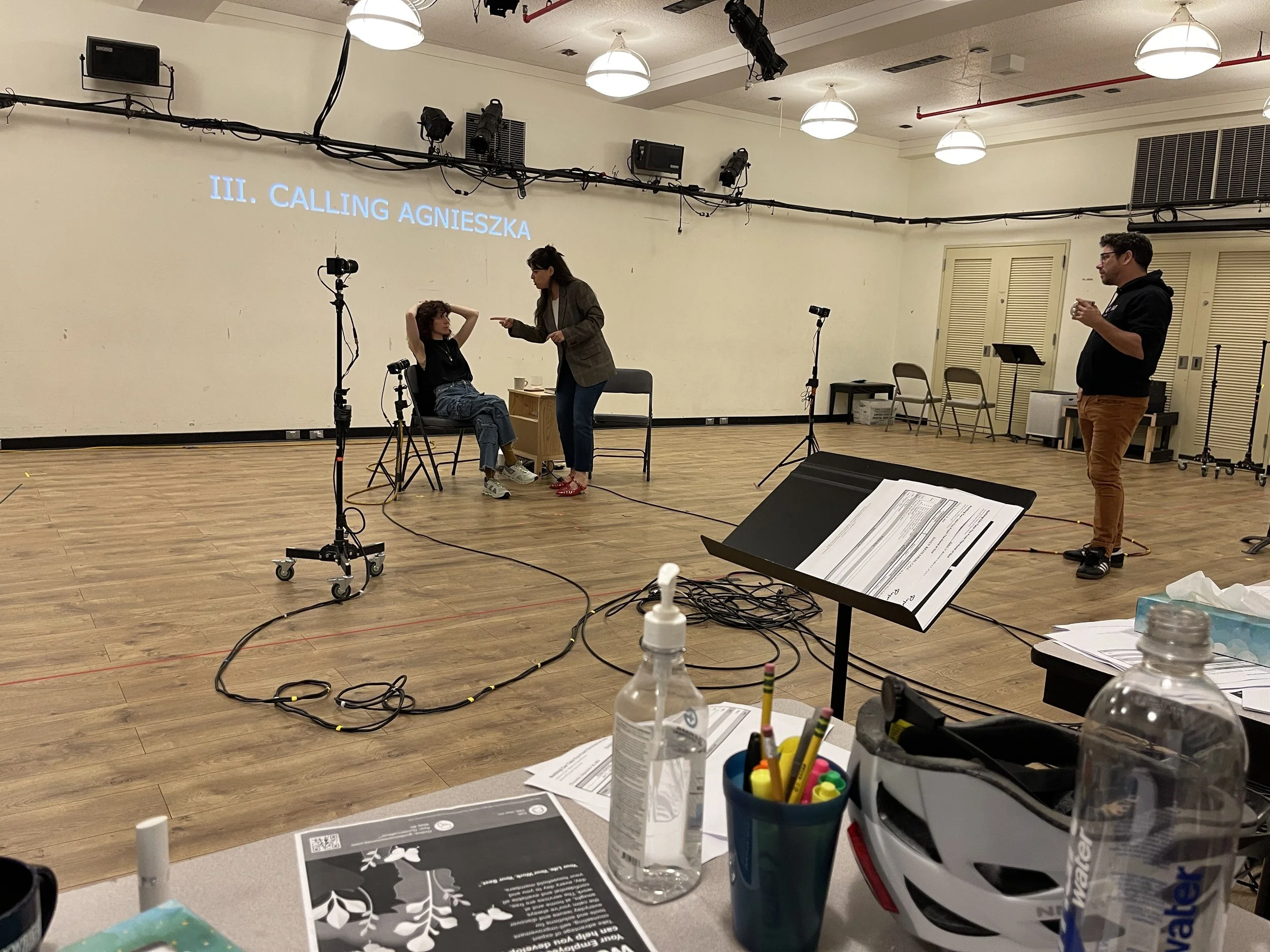 with Jenny Kennedy (production stage manager), Matthew B. Cullen (assistant director), Emmie Finckel (scenic), Amith Chandrashaker (lighting), Evdoxia Ragkou (sound design), Stefania Bulbarella (projection and video design), Matt Carlin (props), Aaron Michael McDaniel (fight choreography), Quin Frederich (stage management fellow.)